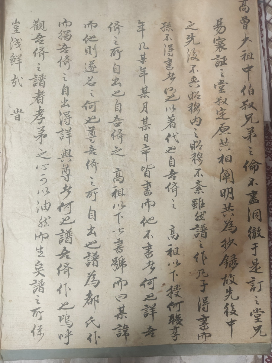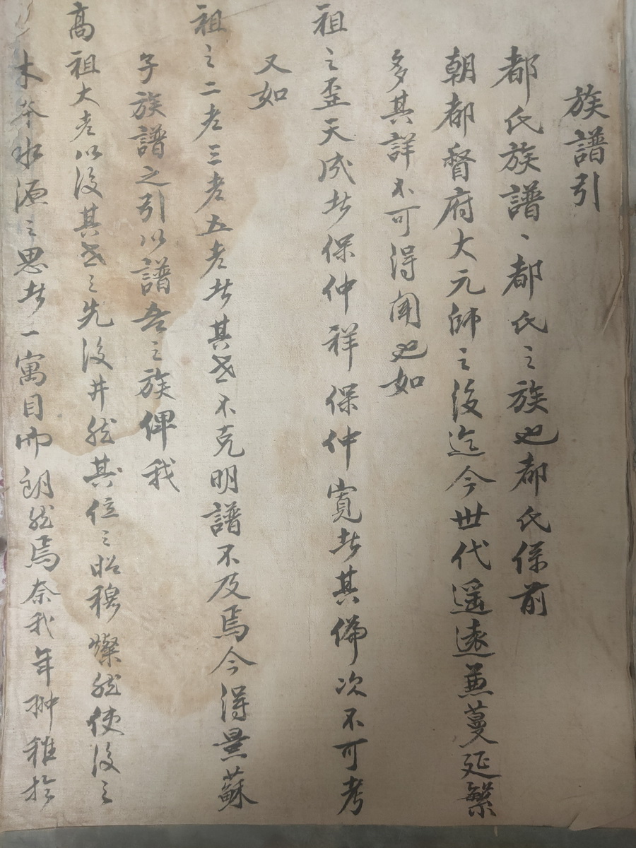 今见族人孝心恳切,共怀追本溯源、续接始祖之志,且遵从“千秋万代辈分不紊”的祖规。为此,我等将各家所藏祖轴集中一处,相互参证:以某家祖轴所载的某代祖先名讳为起点,依序向下接续。虽无法完全追溯至最初始祖,亦难推演至无穷后世,但可确保自接续点起,子孙辈分永不紊乱。如此,新创家谱以承前启后,足矣。