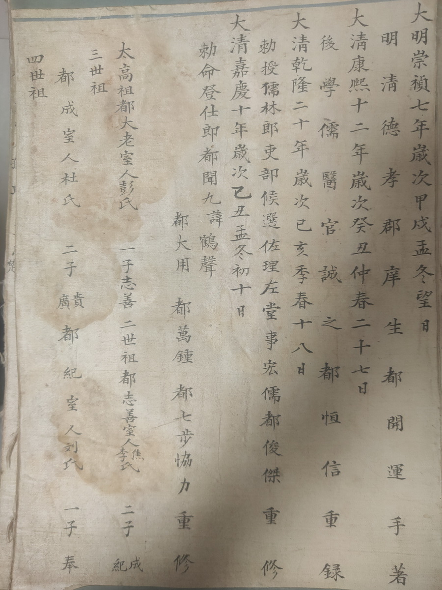 上溯先祖自洪武邊民以來至今五百餘年祖