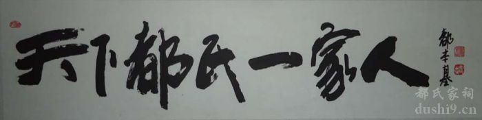 作为都氏家族的一员,都本基先生对家族充满了无比深厚的感情,先后多次来到山东牟平都氏家祠祭拜先祖,并书写了都氏家祠牌匾和对联,2007年在都氏家祠书写的“都”字让前来祭拜的宗亲感到无比亲切,2010年为首届华夏都氏文化论坛书写的“天下都氏一家人”让全国各地都姓人感到十分温暖,最近又为《华夏都氏》一书书写书名并题词,大气磅礴,令人振奋。