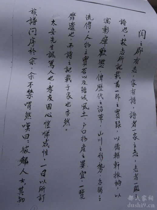“都”姓虽稀少却能够沿着长达五千年中华灿烂文明史的足迹走到今天已属非凡。关于老家湟中县河湾家谱的一些轶事,听老人们讲这本家谱是跟随着先祖在明洪武年间从南京竹子巷到的青海,从南京出来兄弟三人,其中之一落脚河南;另外二人到青海,一人落脚西宁韵家口,另一人到了湟中是我们先祖的那一支。今天在都基民BLOG中看到河南安阳滑县万古镇寺台村有两支都姓人,并建有两座家庙。其中有一支,其都氏族谱表述的比较详细,这份都氏族谱形成于民国二十六年,族谱序言称“世传,族人分为老四门,先有家谱,被火焚化。”