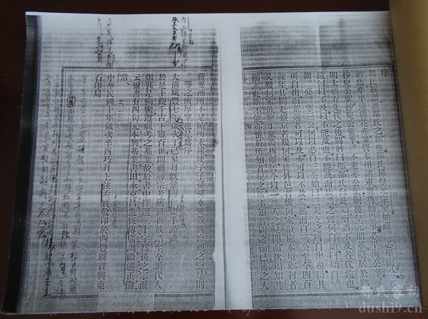 自我七世祖(都呈忠)由山东牟平县迁居辽宁省岫岩县,八世祖又迁至本溪县赛马集四方粒子南沟居住,因名都家沟,历一百余年。自我祖父悦荣于光绪九年迁居辑安县下活龙盖,又五十年矣。吾家谱书创始载籍详备,不意于清光绪八年因不慎于火,房屋被焚,手泽几尽,能不悲哉。距今前十一年,先父元春年已逾六旬有余,每念及此事未当不深念水源木本之思也。然事隔多年,无从参籍,虽于山东牟平原籍处函请族长赐给一眣,以备参考,因事关重要未能如愿。后语余曰:今再不续修,历世既久,将必有水木之源本或忘宗族之远近难分等语相告。余独何心敢不以先父之志为志乎,于民国九年因公赴省适遇宽甸县族弟本乙藏有数本,请给一贴,捧阅之余,始悉由山东迁辽宁,时不知何世即行遗漏无从籍考,幸有最上之老宗谱尚存,详加参考,始悉七世祖以上支派相符,秩然不紊,自七世祖以下参照老宗继续篡修,其名字里居不敢略,亦不敢诬,可考者 考之,不可考者阙之,总之一归于实,奈族支太繁,相居亦远亦属恨事,既镌之,后凡我族人倘因谱之再修,益相勉于孝慈友恭之道,是余所厚望也夫。