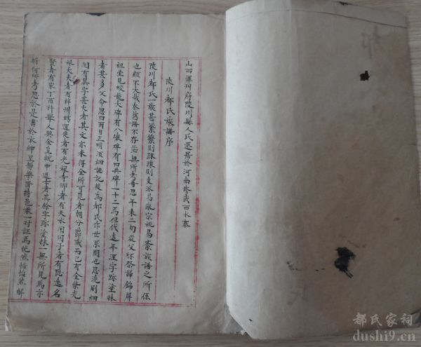陵川都氏一族甚繁,繁则疎,疎则支派易乱、宗祧易紊,族谱之所系也,顾不大哉!奈旧谱不存,茫无所考。昔,思年未二旬,从父怀祭扫锦屏山祖茔,见蛟龙大碑有八,坏碑有四,共碑一十二焉,但代远年湮,字迹涂抹者甚多。父命思曰:尔目正明,须细认后为都氏作世系图也。思洗刷细阅,有其字甚大者其文亦未得全,所可见者,朝分爵职而已,有金紫光禄大夫者,有梓州转运使者,有光禄寺卿者,有天水开国子者,有隐逸名贤者,有宋丁酉科举人与金皇统中进士者,其余字迹涂抹,一无所见焉,亦将何所考。思于是书于衣绅,至静乐斎,持邑乘一对证焉,恍然悟,怡然解,曰:思今日于都氏之在宋者乃得其真焉。敕赠金紫光禄大夫祖讳道宁,朝请大夫转梓州转运使祖讳贶,光禄寺卿掌太医院祖讳嘉猷,元丰间隐逸名贤祖讳君锡,丁酉科举人祖讳大荣,金皇统中进士(祖讳)瓘,与锦屏祖茔碑石之所载者,实符合也,思得此幸莫大焉!虽未得某祖为某祖之所出,亦得志之所载者,向为贶之兄,嘉猷,贶之侄也。思亦不忍湮没无闻,故于壬子谨记之于谱,以昭祖德,以俟后世庶无误也,后之阅者,未有不豁然于心目间耳。