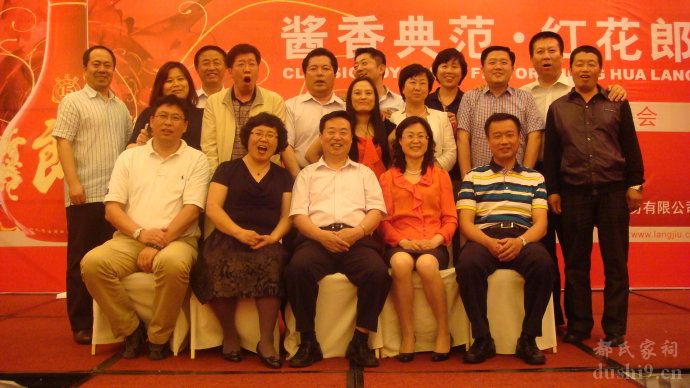 这个红花郎酒有着浓郁的中国民族特色,纯正大红花瓶透着喜气和吉祥,名字也靓。今晚每桌放置大小几种郎酒,桌椅套都是洁白的,更醒目衬出它的娇艳、妩媚并且酒香馥郁。20几桌嘉宾,我们就占了两桌,大家喝至酒酣,说应在今晚借红花郎酒的喜气和东风成立大连都氏联谊会,得到一致响应后,两桌并一起,会议选举开始,一致推选本有大哥为会长,业坤为秘书长,兴元为副秘书长,我为策划师,兴林为法律顾问。大家举手通过,然后一一发表就职演说,议题中笑声不断,老都家不乏幽默的活宝,逗得大家哈哈大笑。因为这毕竟才起头,很多事情待人更多更齐时来规范,大约在七月初再开会定夺。
