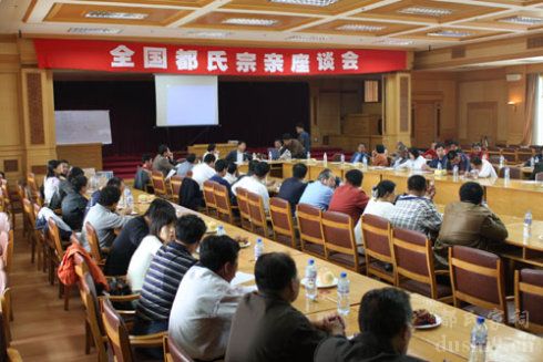 下午2点半,全国都氏宗亲座谈会在宾馆会议厅举行。都基民作为新浪博客《都氏家祠》的博主,首先将自己近年来收集整理编写的都姓历史资料分发给大家,并与大家一起交流了我们都姓的历史渊源——牟平都姓始祖必里海;牟平都姓的起源;牟平都姓辈分排列;全国都姓简要情况。本次座谈会的主要主持者都本仁先生、都基珠先生做了简短的发言之后,各地宗亲踊跃发言,对此次活动的组织者表示感谢,对自己参加本次活动表示感慨万千。