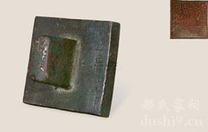 尺寸:印面边长75mm;通高55mm,方形,橛钮,印文九叠篆“都达鲁花赤印”,印台汉字与印文相证,精美。