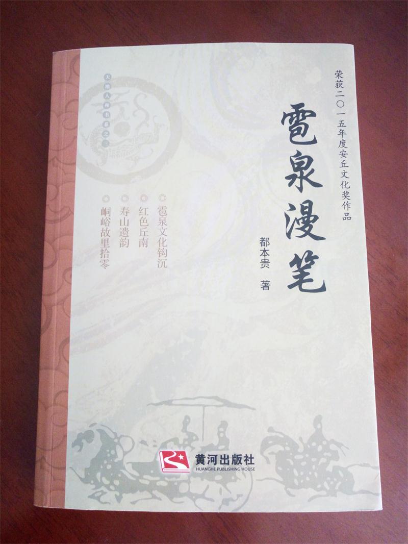 都本贵先生编著的《雹泉漫笔》,由黄河出版社2015年12月出版发行,该作品荣获二〇一五年度安丘文化奖。