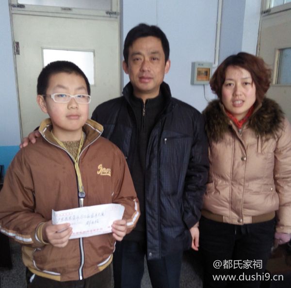 为了能够长期帮扶都家贫困生,都业强选择了一名小学生作为帮扶对象——牟平实验小学的都家子弟。2014年1月17日上午,带着都业强宗亲的重托及寄来的第一笔1000元的爱心善款,我来到牟平实验小学,通过校方领导找到了这名同学。据郑校长介绍,这名同学品学兼优,但是由于家庭特殊情况被列为贫困生行列。有你们都氏家族的爱心捐助,校方表示衷心感谢,并相信都家子弟一定会以家族为荣,努力学习,成为栋梁之才。学生家长接到电话也赶到学校,得知都家亲人的真诚相助十分感动,极力推辞拒收都业强的捐助,并表示对都家亲人的这份情谊感到非常过意不去。在我与校方领导的劝说下,学生家长勉强接受了善款,同时决心好好培养学生,一定要为家族争光。