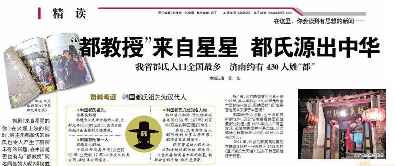 2011年,北京的都英禹收集到在韩国发现的一份形成于1752年的《星州都氏大同谱》,证实了韩国都姓源于我国。