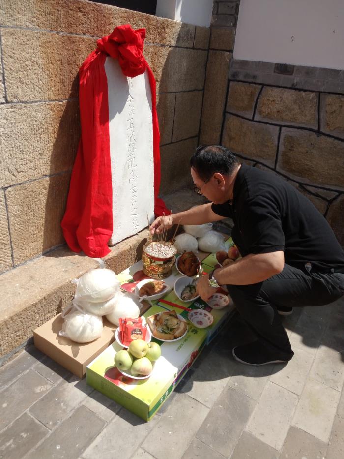 本次祭祖活动,都本伟先生向家祠捐资两万元,并与北头村委会主任都淑琴、家祠修缮小组负责人都基珠等当地宗亲进行了亲切交谈。都本伟先生讲,都氏家祠建修落成祭祖大典活动,效果很好,影响很大。大典活动之后,峒岭村老书记都兴明宗亲发现了散落于外的都氏祖碑,刻立于民国十一年正月,距今近百年。石碑的主人为都丕城,奉祀人男世恺、孙悦清、曾孙元兰、元芳。经都基民核对,这尊石碑竟然就是我高祖之碑。都本基先生得知后,感叹先祖有灵,显世于今,建议在家祠筹划创建都氏碑林,将以后发现的都氏百年祖碑敬立于此,以示都氏子孙“慎终追远、诚孝明德”之心。祭祖与交谈之后,都本伟先生与本家叔叔都元盛、都元平等将高祖石碑请到都氏家祠存放,并举行了传统的祭祀仪式。