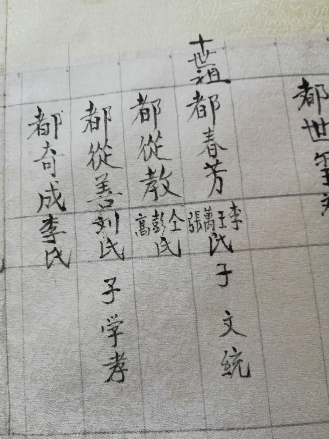 从长明提供的滑县万石镇寺台村家谱照片来看,第十世都從善公和都從教公是并列出现的,从家谱中都從教查不到后代,但都從善可以查到,如图