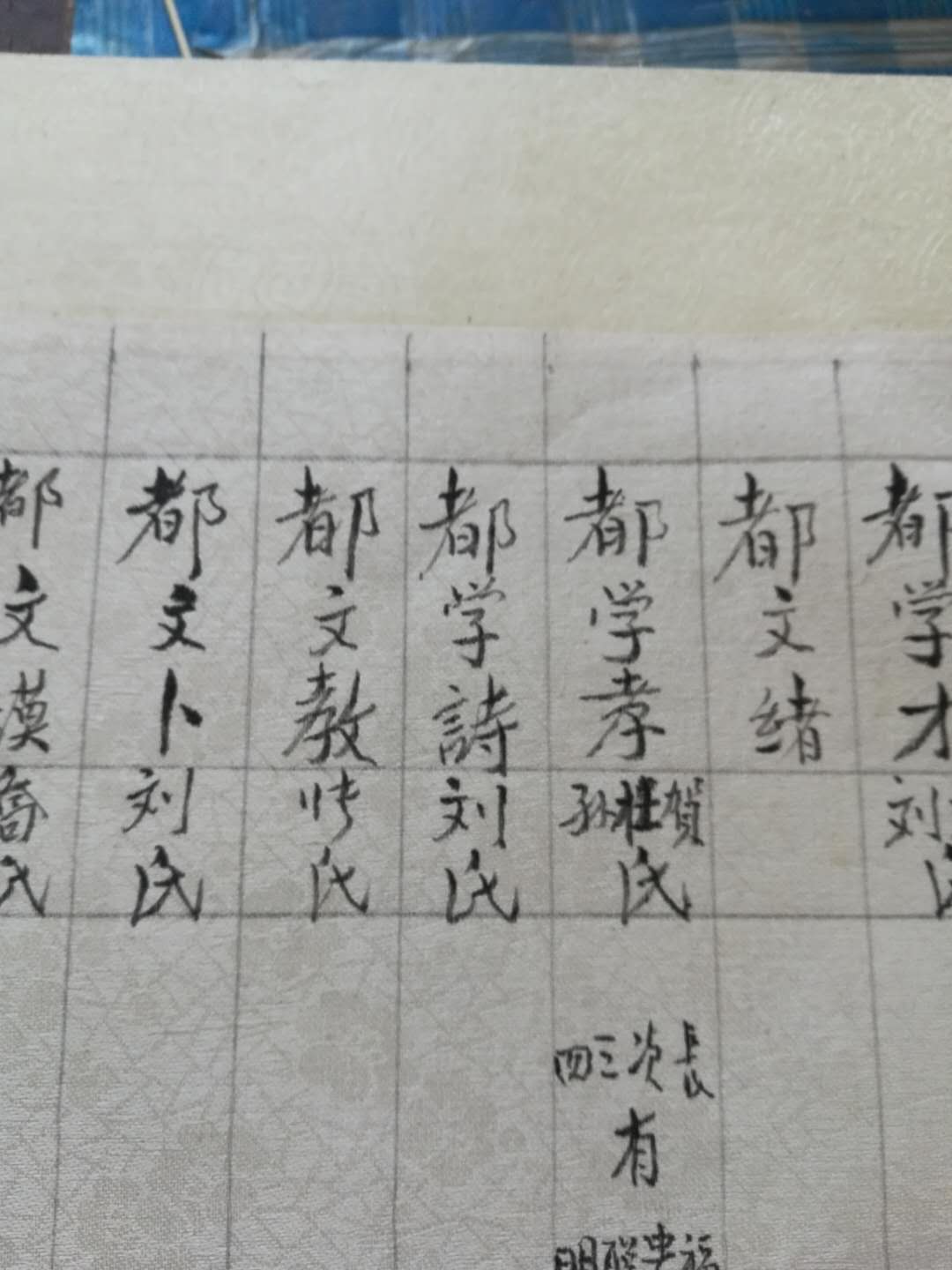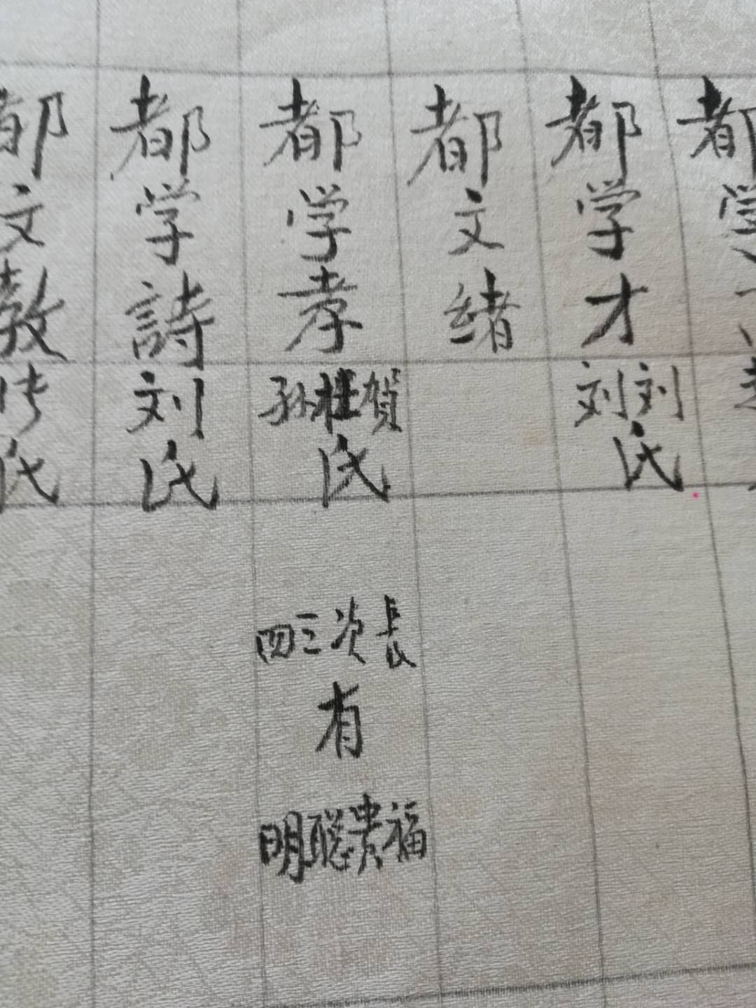 第十一世都学思名字问题?从滑县的家谱,以前就找过,1、第十一世没有叫都学思的,只有都学詩和都学士,有可能后辈到都家炉后写成音译了,滑县家谱都学詩正好对应刘氏;2、都家炉的家谱都学思对应刘氏和朱氏(都学思前有一个空格,两位女方也没有填写到一个格里,代表是两家人,少写了一位男方这和后辈记忆有关);3、都家炉后辈范有思字辈,如果祖辈叫都学思,那后辈起名带有思字,那样会触犯祖宗名讳问题;4、我们换个方式思考,既然都從善和都從教并列,后代也应该是并列出现,前文提到过,从下图可以看到学詩公和学孝公并列,而都学士也是都学思的谐音,但学士公显然不是。如图