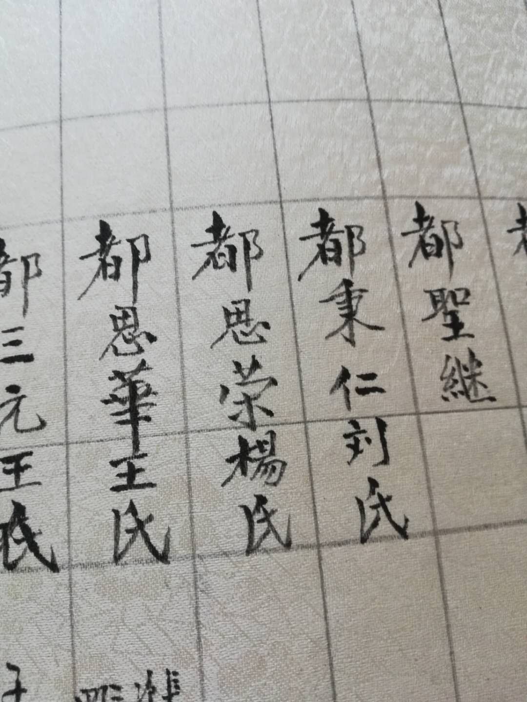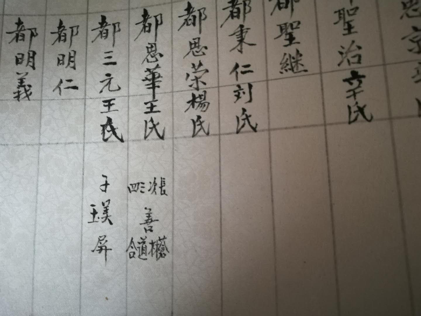 第十二世都家炉的家谱是都有仁对应李氏、義、禮、智、信、德、恩,这里面究竟是谁对应李氏有明显的错误,还有提供的滑县家谱第十二世不全,从提供的滑县家谱上看,只有都有忠对应李氏,还需要进一步比对,下面两张一样,不同角度拍摄。